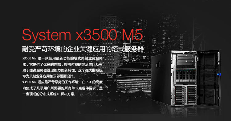 机箱形态 x3500 M5 8x2.5"热插拔硬盘型号 处理器 英特尔® 至强® 处理器E5-2609 v3 1.9GHz 6核 Cache 15MB 内存 1x8GB TruDDR4 Memory (2Rx8, 1.2V) PC4-17000 CL15 2133MHz LP RDIMM RAID M5210 Raid 0,1, 12Gbps带宽,可升级到带缓存/闪存的Raid 5, 可选升级至Raid 6 硬盘 2*300GB 10K SAS 开放式硬盘托架,标配可支持到8块,最大可扩展到32块2.5英寸硬盘 网卡 四口千兆网卡,支持I/O虚拟化等功能 光驱 内置DVD-RW 上架导轨 不含导轨 电源 一个550W热插拔电源,符合80+ 白金标准 扩展性能 I/O扩展槽 PCIe x8 (x8电子)全高半长 PCIe x16(x8电子)全高全长 PCIe x8(x16电子)全高全长 PCIe x8 (x8电子)全高全长 PCIe x8(x8电子)全高半长 PCIe x8 (x8电子)全高半长,需要第二颗CPU PCIe x16(x16电子) 全高全长,需要第二颗CPU PCIe x16(x16电子) 全高全长,需要第二颗CPU 外部设备接口 1个独享千兆管理口 前置:2xUSB 2.0, 后置:2xUSB 3.0, 2xUSB 2.0, 内置: 2xUSB3.0 1xDB-15 VGA口,可选SD卡介质 兼容操作系统 Microsoft Windows Server 2012 R2 Microsoft Windows Server 2008 R2 Microsoft Windows Server 2012 SUSE LINUX Enterprise Server 11 for AMD64/EM64T SUSE LINUX Enterprise Server 11 with Xen for AMD64/EM64T Red Hat Enterprise Linux 6 Server x64 Edition Red Hat Enterprise Linux 7 SUSE Enterprise Linux Server (SLES) 12 SUSE Linux Enterprise Server 12 with XEN VMware vSphere 5.5 (ESXi) VMware vSphere 5.1 (ESXi) 其它特性 主机尺寸(宽*高*深) 218mm * 720mm * 440mm 重量 30.8-45.5千克 售后服务 3年7x24小时有限保修,全国部分城市城市宕机4小时上门服务