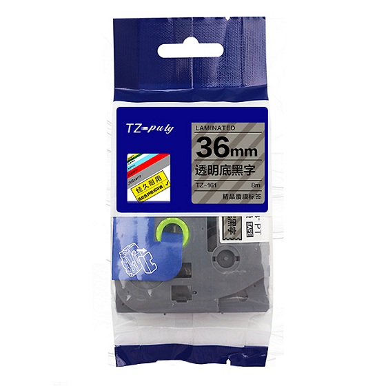 兄弟Tze-161原装36MM透明底黑字 标签色带