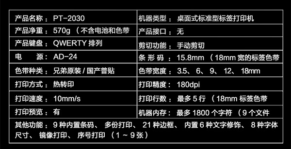 浙江杭州兄弟标签机 pt-2030条码打印机标签机便携标签机标签打印机