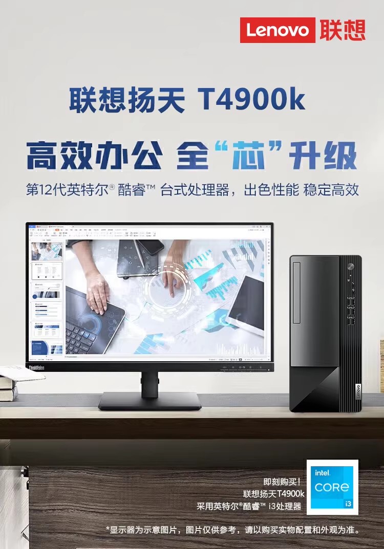 联想扬天T4900k台式电脑 I5-13400/8G 内存/512G固态硬盘 集成显卡/W11 家庭版 17升大机箱/23.8寸显示器 三年保修 价格:5050元